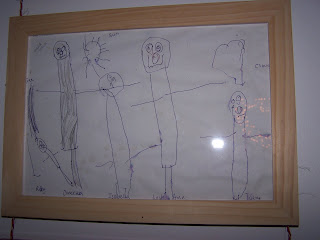 The inspiration for the gallery came from a mixture of Ikea (those cheap frames again!), Mister Maker (“Lets frame it!”) and Amanda Soule’s book, the Creative Family (see sidebar) where she talks about doing an annual exhibition of her children’s artwork. I want so much to honour my children’s creativity. Framing their work was a way of conveying this and I think the resulting gallery is gorgeous.