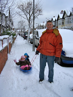 what total, busy fun you always seem to be having. Taking the sled to buy an xmas tree. I am still to buy a tree, get the decorations up although there was a snowman built in the garden and a snowbound trip in a taxi to buy some goodies wtih grandpa! My, I have so much catching up to do. All day sunday (which was meant to be a sledging day) ended up being an entire day clearing out months of non-housework in my house. Felt so much better but torn I wasn't doing kiddie snow things! oh my, the perils of crazy motherhood and working etc!